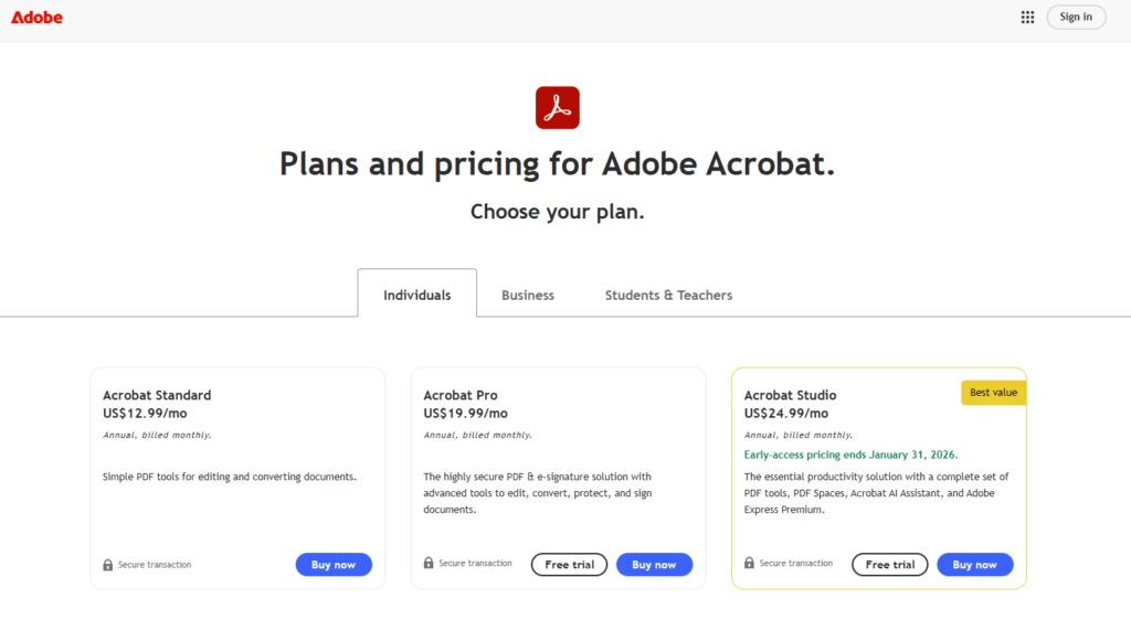Adobe offers flexible Creative Cloud subscriptions, including: