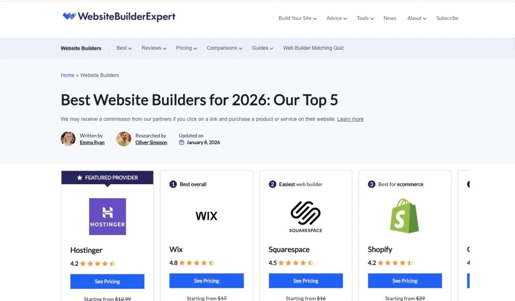 Best Website Builders for Professionals in 2026