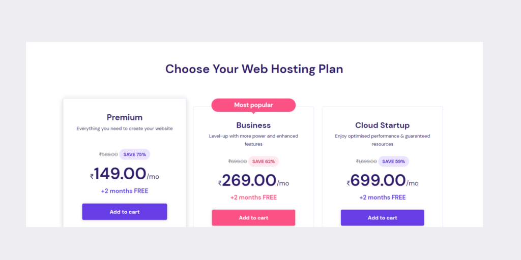 | Cloud Startup | E-commerce & growing brands | Dedicated resources, 3x faster, easy scaling | ~₹699–899/mo | https://www.hostinger.in/cloud-hosting |